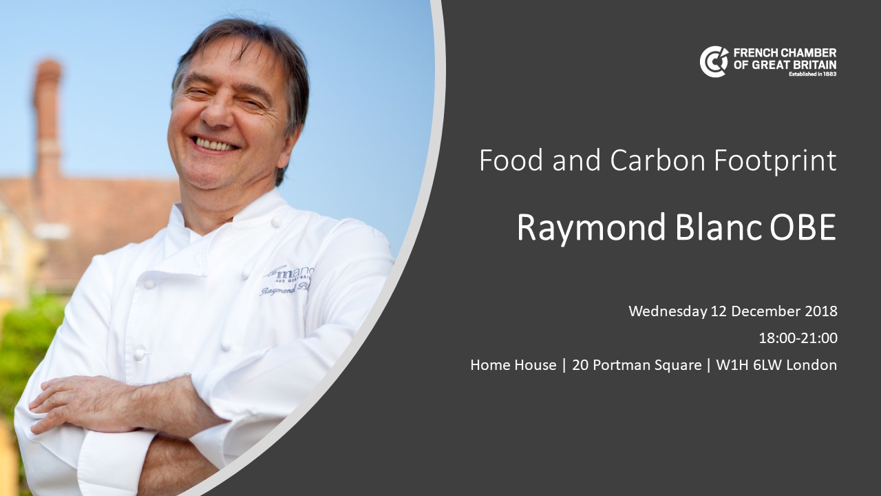 Come and rub shoulders with the colourful and passionate grand chef Raymond Blanc OBE, who will talk about a subject close to his heart: Food & Carbon Footprint. Join us for an inspiring and enriching evening of discussion on sustainability and discover the French Chamber's Climate Change & Sustainability forum!