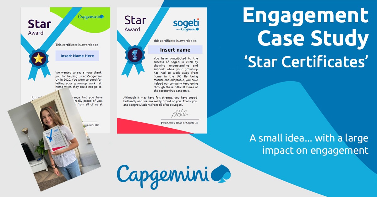 The company created three ‘Star Awards’ certificates – for younger children, older ones and those working with the company from India with families back home – which were then shared by email and on their company-wide collaborative “@Home” Teams space, which was set up during lockdown to support engagement and allow colleagues to interact informally.