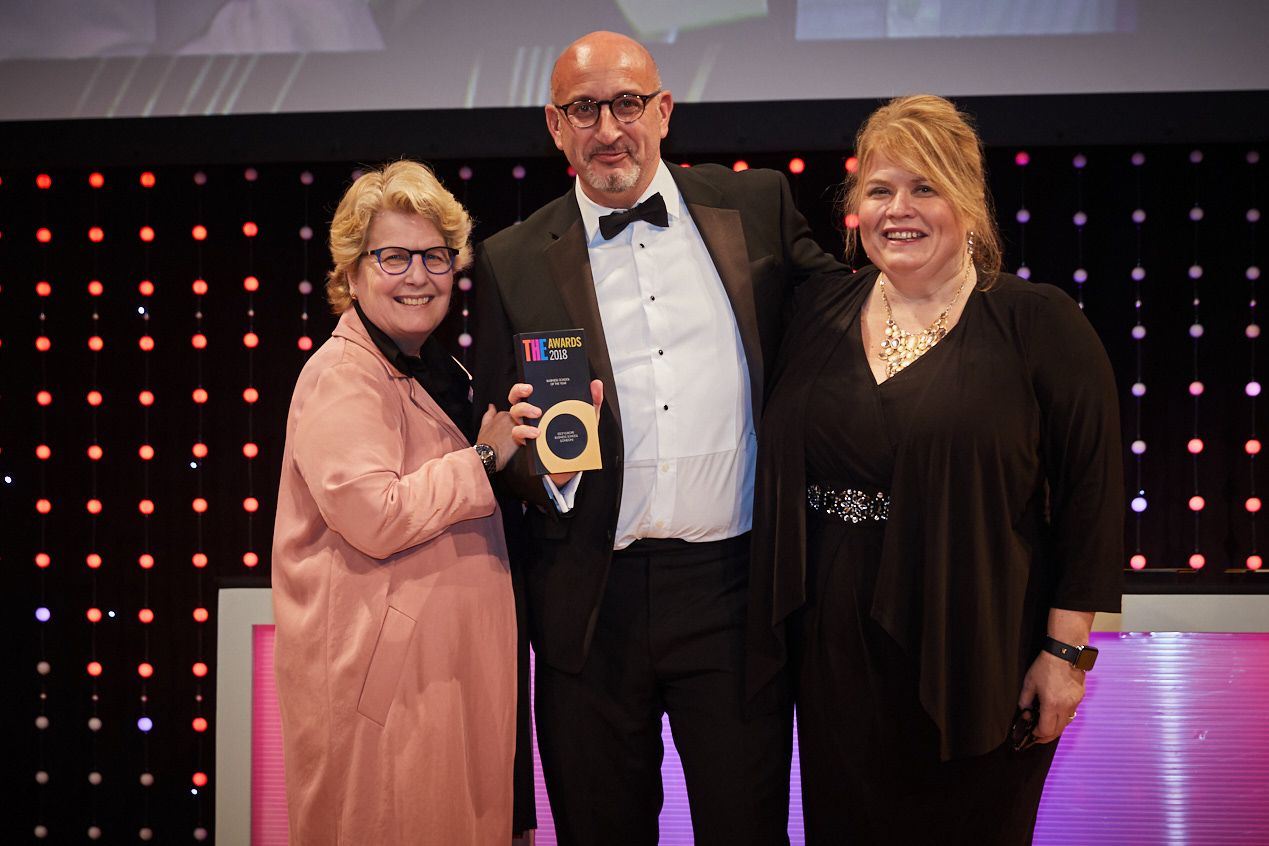 The award was presented in front of 1,000 business and sector leaders at the Grosvenor House Hotel on Park Lane, with U.K. Dean Professor Simon Mercado receiving the prize from Sharon Butler, EVP for Global Education at official sponsor Flywire, and broadcaster Sandi Toksvig.