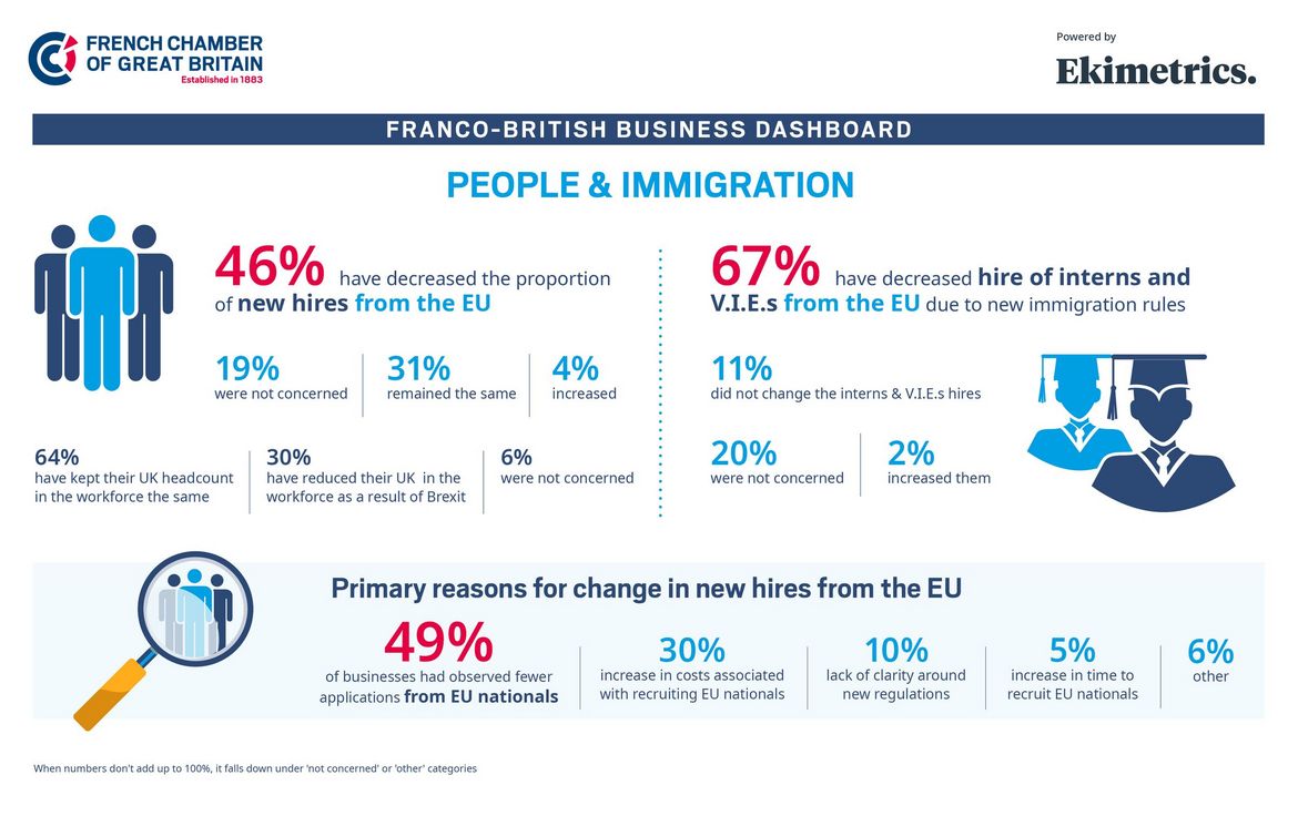Commenting on the findings, Fabienne Viala, President of the French Chamber of Great Britain, said: “Brexit has clearly had particularly serious consequences for the recruitment of EU labour and this has forced business leaders to modify their operations accordingly. The French Chamber will continue to provide support to companies as they navigate the ongoing impacts of Brexit.”