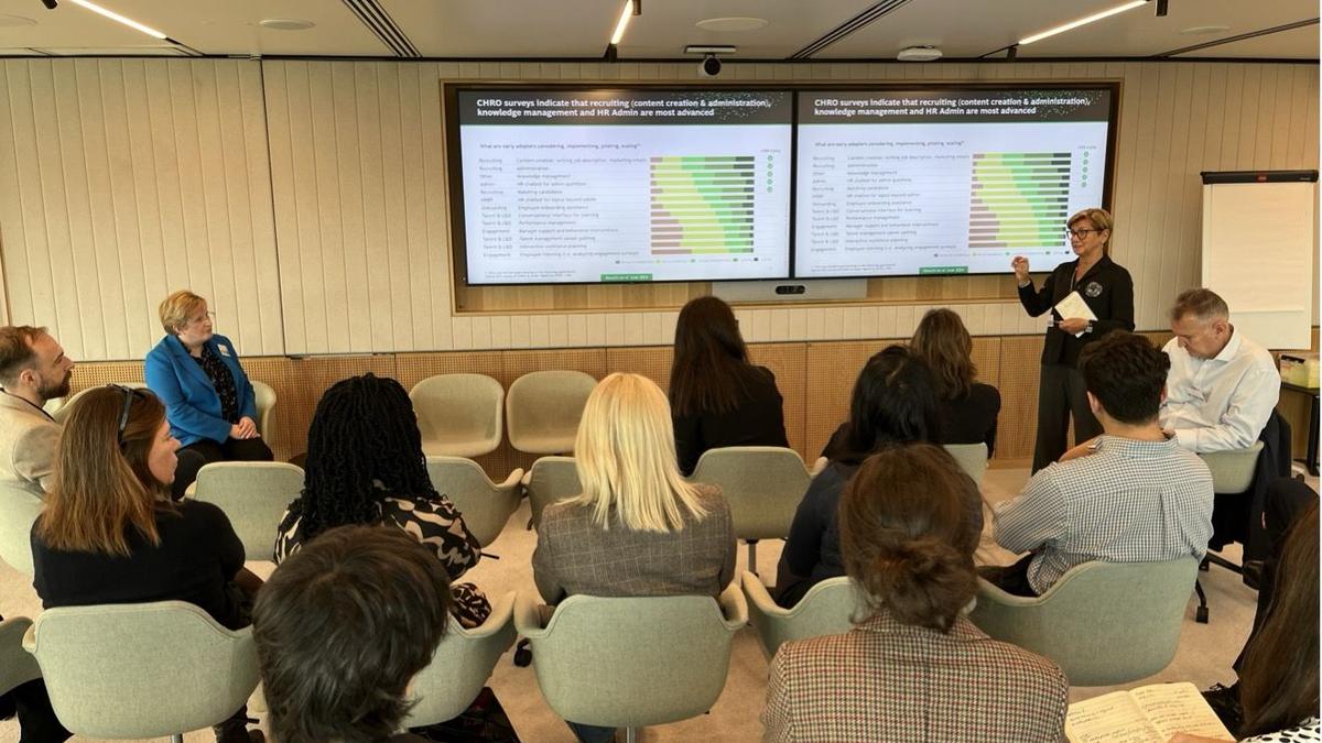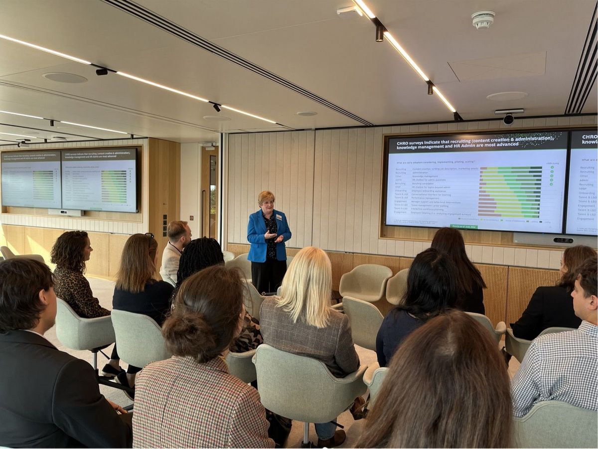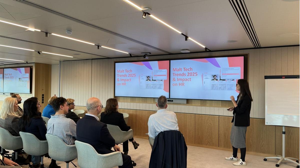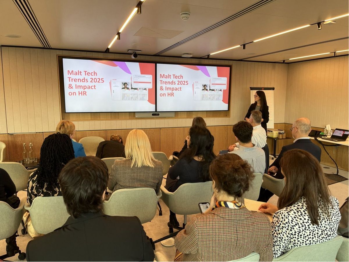 Attendees gained both theoretical and practical perspectives on how AI is transforming recruitment. Nick South offered a strategic overview, covering adoption trends, key advantages, and the essential role of governance and ethical considerations. Meanwhile, Anaïs Ghelfi presented real-world examples from the Malt Platform, demonstrating how AI enhances talent matching, candidate engagement, and onboarding processes.