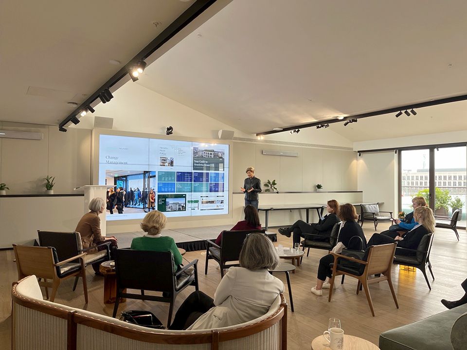 Pia Dekkers chaired the event, and Kate Smith, our speaker, organised a tour and explained how CBRE has implemented a workplace strategy that aligns business objectives with employee well-being. She highlighted how this approach can drive long-term success and competitiveness.
