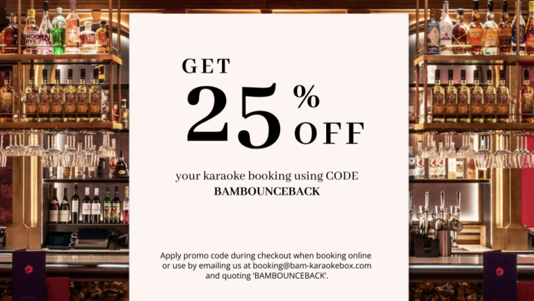 25% off at Karaoke at BAM Karaoke Box ! 22 Individually designed and themed private rooms Enjoy pop quiz, open mic nights or Bottomless brunch to enhance your BAM experience